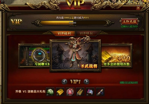 玩家首次充值达到100元宝,就可以成为VIP,享受众多特权福利。